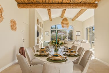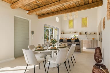 Pouvant accueillir confortablement jusqu'à 8 personnes, cette propriété séduit par son atmosphère chaleureuse, sa décoration raffinée et ses espaces baignés de lumière. Elle dispose de 4 chambres et 4 salles de bains ainsi que d’une annexe indépendante au design parfaitement coordonné, qui combine espace fitness et suite privée vous permettant d’opter pour une intimité totale avec sa salle de bain privative et son espace de travail au calme