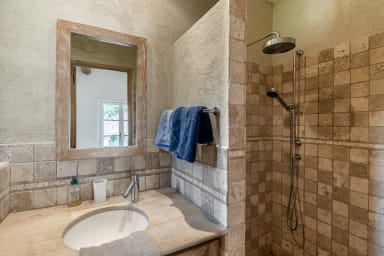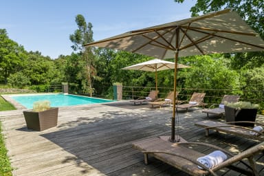 The property extends over 10 hectares, with a large terrace offering a superb view, a gas barbecue, and a wood barbecue with a fireplace for your outdoor meals. For swimming enthusiasts, a huge infinity pool of 16x6m, secured by a cover, awaits you for refreshing moments. The pool house is nearby. An outdoor shower is also available for rinsing off after a swim. In the beautiful landscaped garden, there is also a vegetable garden, an herb garden, and a pond.
